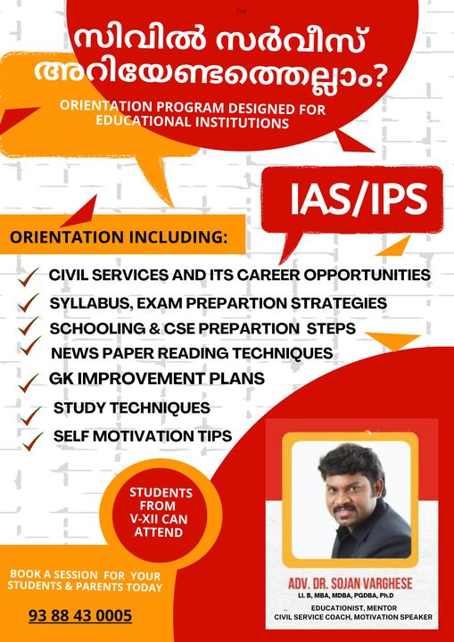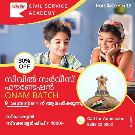സിവിൽ സർവീസ് September Batch Admission തുടരുന്നു. കൂടുതൽ വിവരങ്ങൾക്കും സ്കോളർഷിപ്പിനും വിളിക്കാം 9388230002 https://wa.me/+919388230002