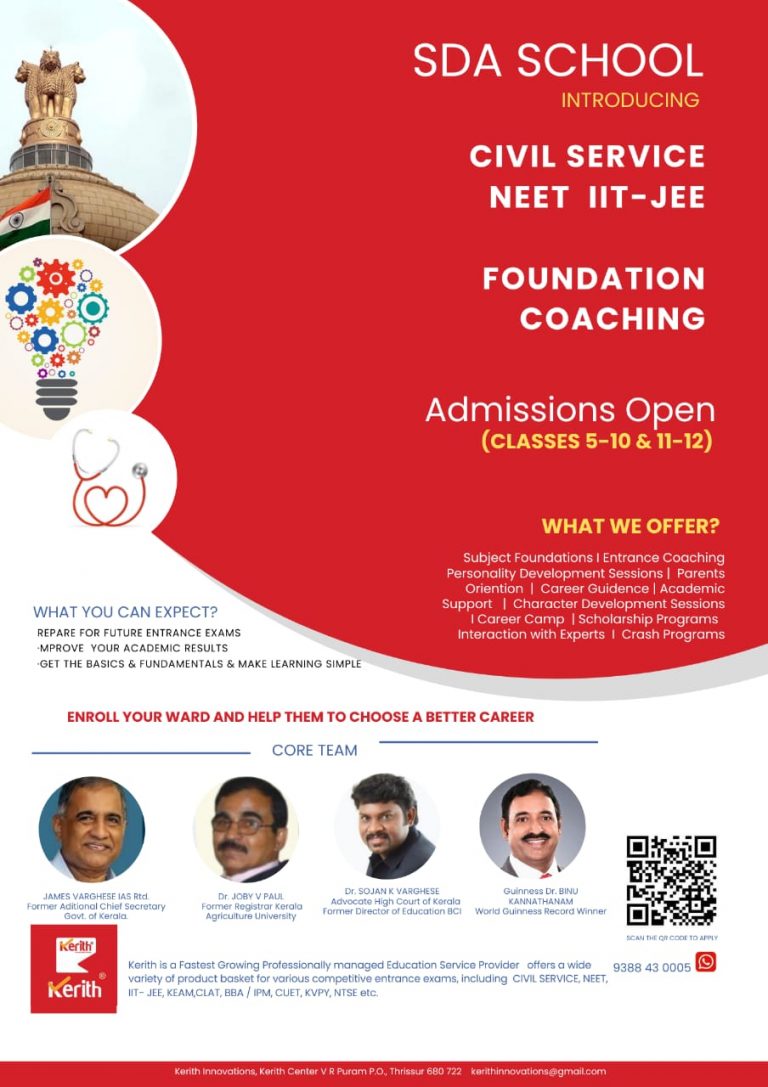Seventh Day Adventist School and Kerith Academy are jointly launching a training program called Civil Services NEET JEE Junior.Those studying...