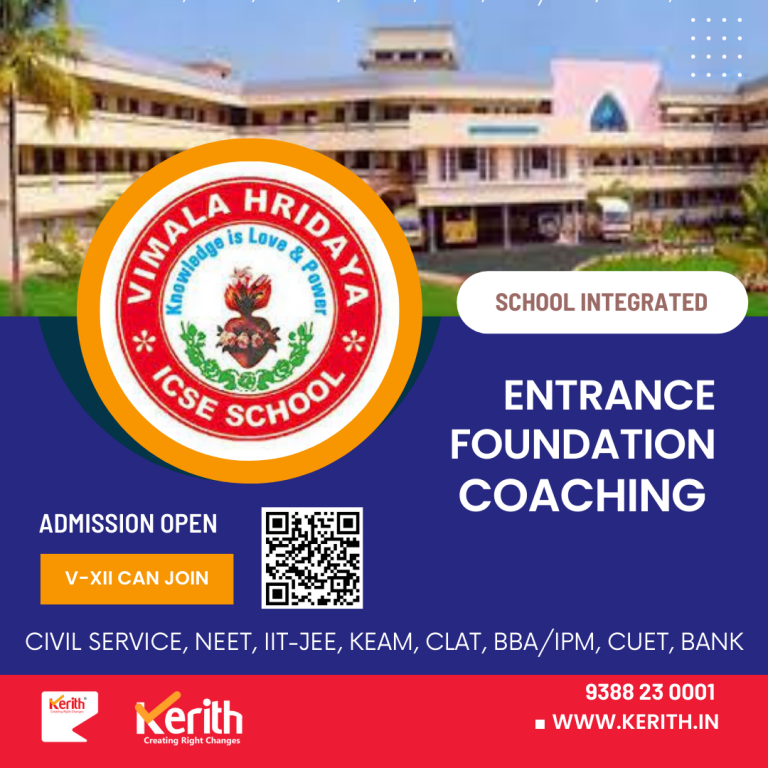 NEET, KEAM,CIVIL SERVICE, BANKING, LAW MANAGEMENT, UPSE, KAS ഉൾപ്പടെ വിവിധ എൻട്രൻസ് പരീക്ഷകൾക്കുവേണ്ടി വിദ്യാർത്ഥികളെ പരിശീലിപ്പിക്കുന്ന കെരീത്ത്എൻട്രൻസ് അക്കാഡമിയും കൊല്ലം വിമല ഹൃദയ ICSE...