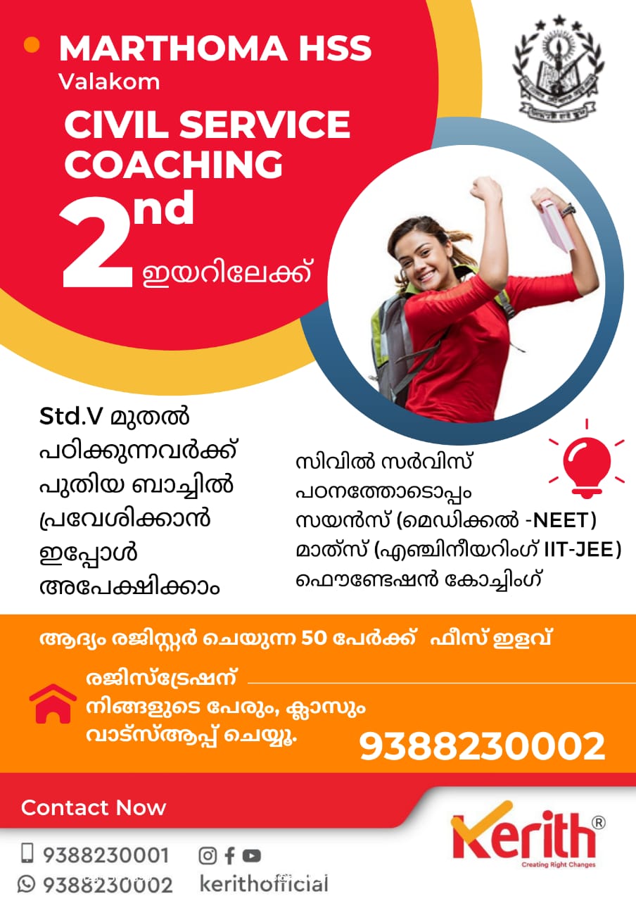 മാർത്തോമാ ഹൈസ്കൂൾ വാളകവും കെരീത്ത് അക്കാഡമിയും സംയുകതമായി നടത്തിവരുന്ന വിവിധ കോച്ചിംഗ് പ്രോഗ്രാംസ് രണ്ടാം വർഷവും പിന്നിടുന്നു .